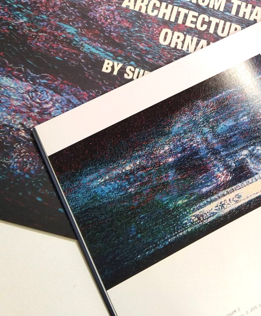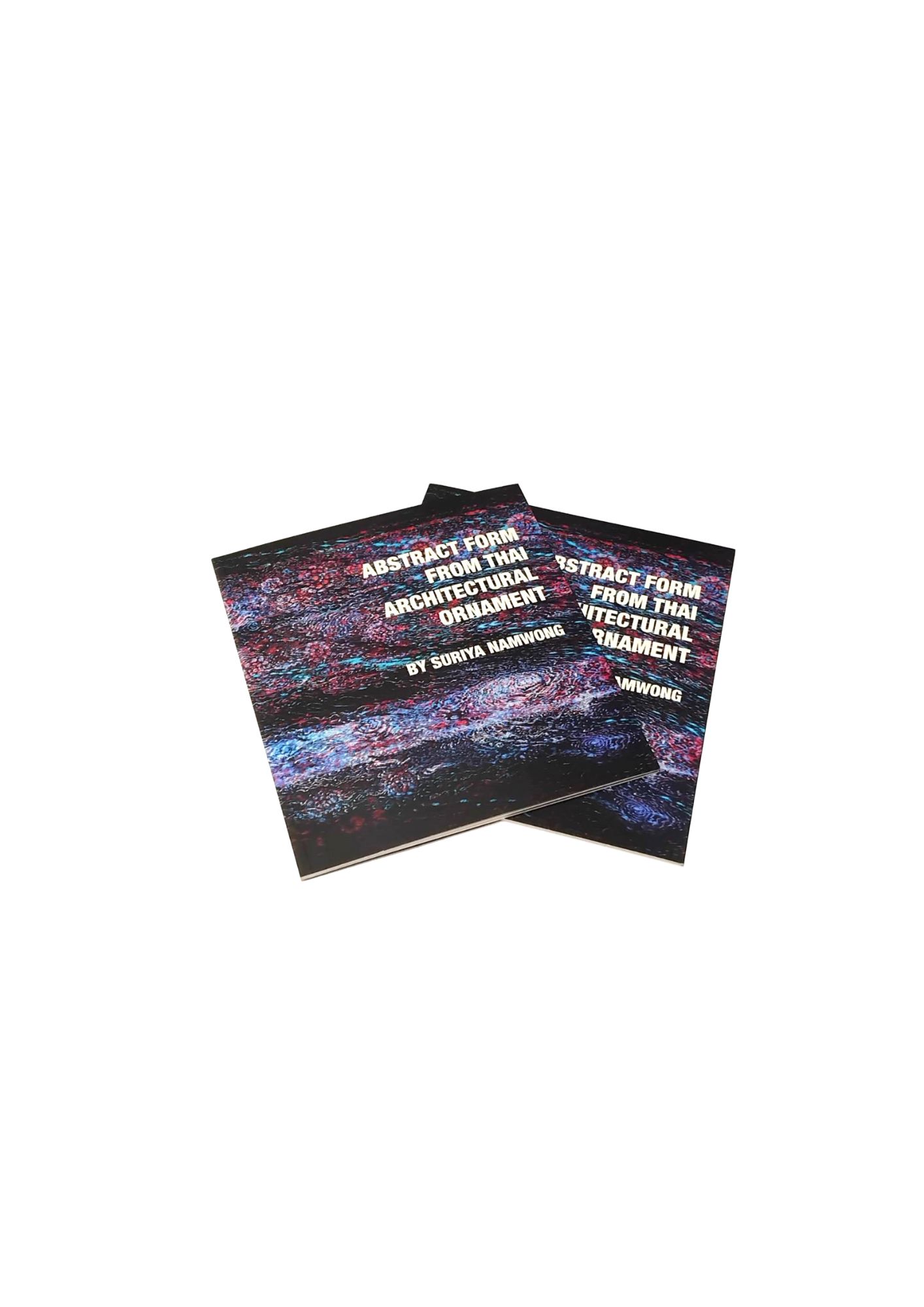 This book compiles works from the exhibition “Abstract Forms from Thai Architectural ornament ” by Suraya Namwong. The artist drew inspiration from the movement of ornamental patterns and the visual forms found in Thai architecture, blending this with ideas of natural change and transformation. The works aim to convey the artist’s emotions and attitudes