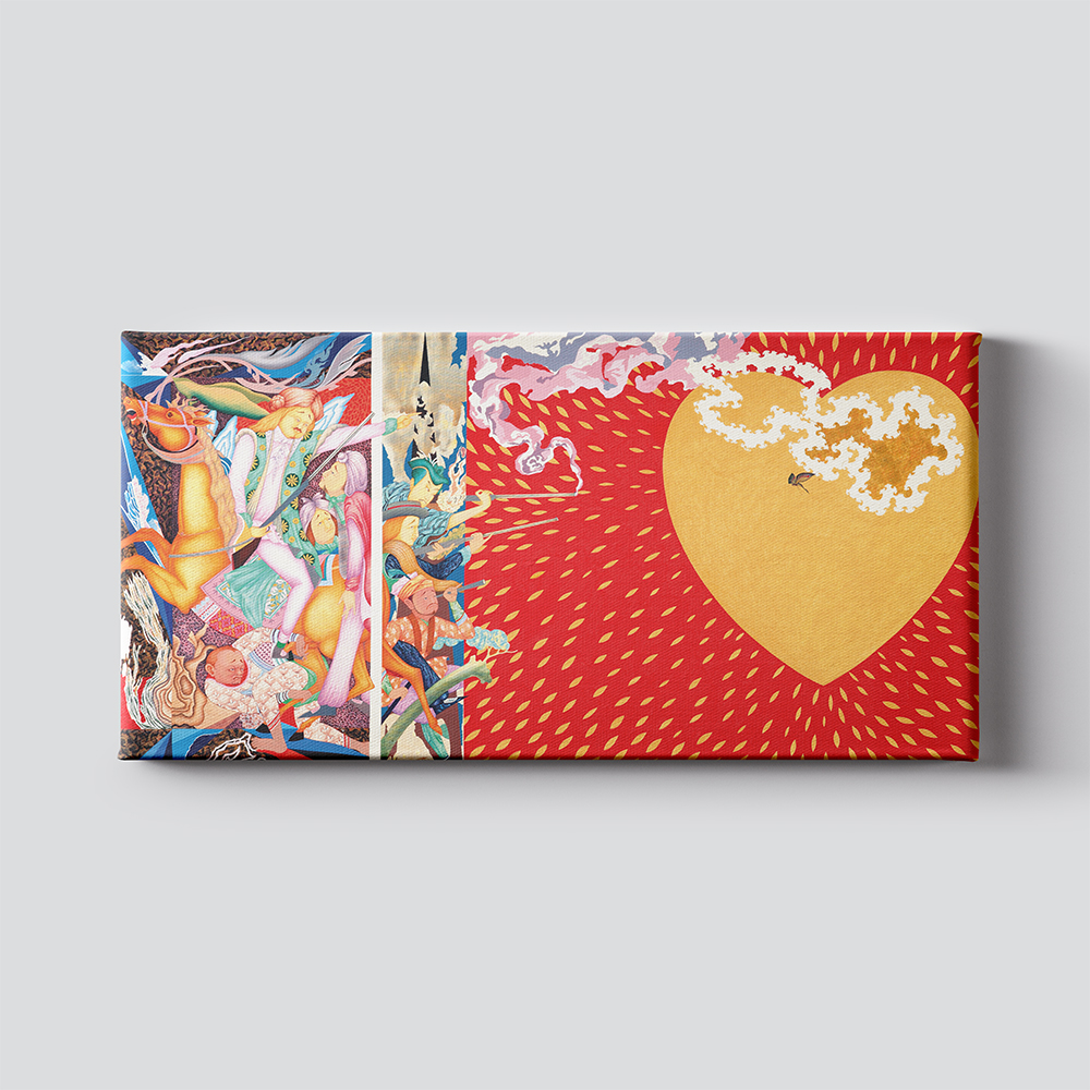 ผลงาน “อารยธรรมวิกฤติ” โดย อาจารย์ปัญญา วิจินธนสาร ศิลปินแห่งชาติ ศิลปินผู้โดดเด่นในงานศิลปะไทยประเพณี คลี่คลาย ผสานตัวเข้ากับแนวคิดในปัจจุบัน ทำให้ผลงานอารยธรรมวิกฤติเป็นภาพจิตรกรรมที่ ร่วมสมัยสะท้อนการเติบโต และเปลี่ยนแปลงวัฒนธรรมที่ไหลบ่าเข้ามาสู่สังคมไทย ผลงานภาพพิมพ์บนผ้าใบชุดนี้ มอบความพิเศษ ด้วยการใช้เทคนิคทำทอง เช่นเดียวกับภาพผลงานจริง ในบริเวณหัวใจที่เป็นสีทอง