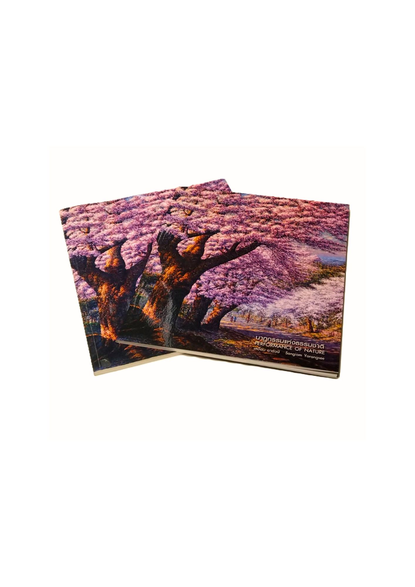 This exhibition brochure presents Performance of Nature by Sieng Yamrungsee — a collection of paintings that reflect the artist’s journey of discipline, learning, and letting go. Nature itself becomes the stage: the earth, the sky, the forests, the mountains, and the waters serve as symbols and silent narrators. Through these natural elements, the artist explores an inner dialogue and expresses it on canvas, transforming personal growth into a poetic visual experience.