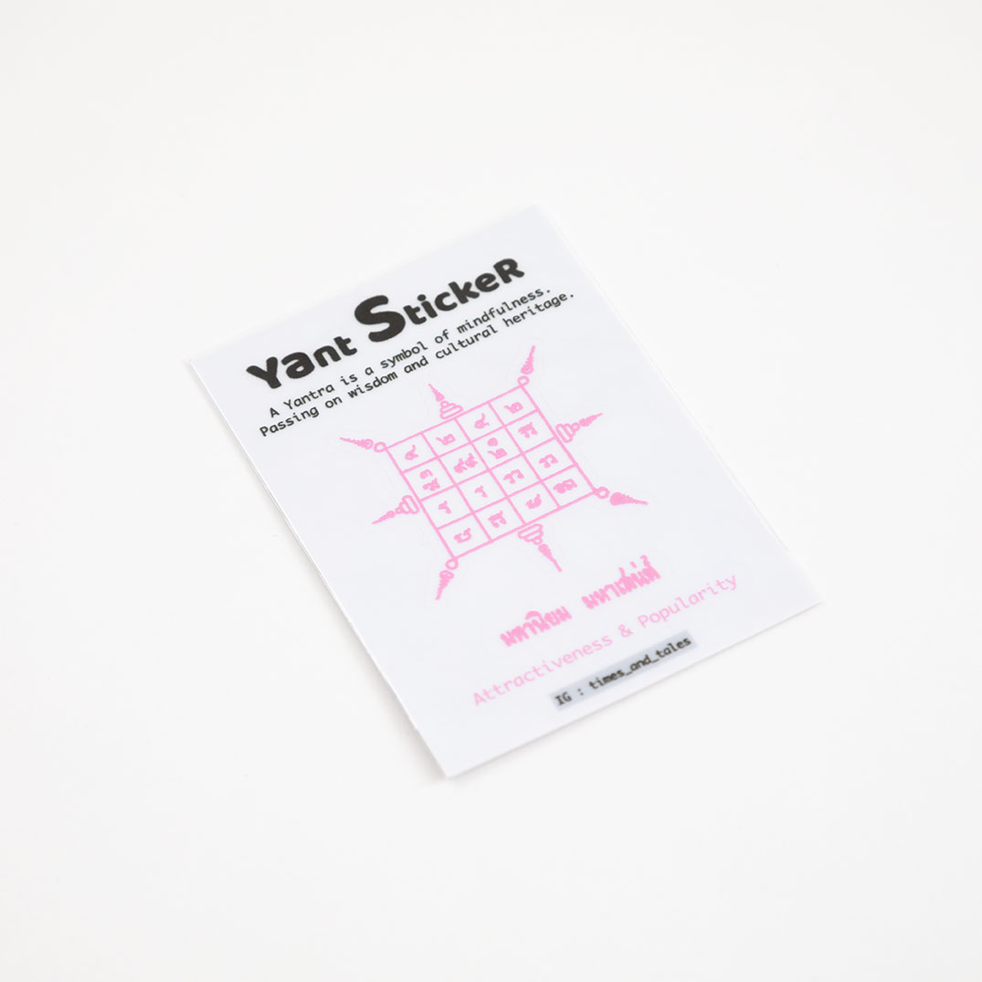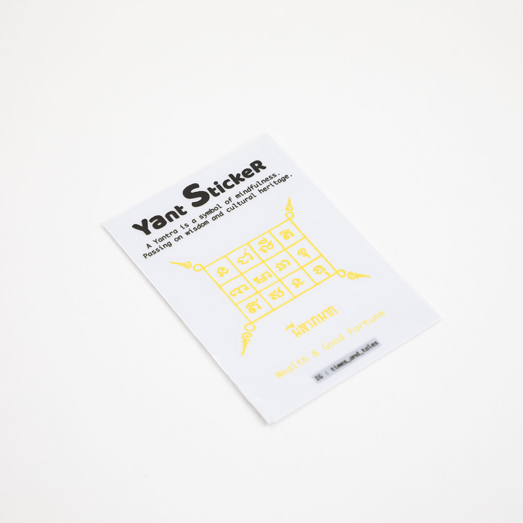 | Yant Sticker | มีลาภมาก, มหานิยมมหาเสน่ห์, เมตตามหานิยม, เจริญในปัญญา, จิตผ่องใสสดชื่น, ค้าขายดี, เจ้านายรักใคร่, เเคล้วคลาดคงทน, คุ้มกันภัยต่างๆ, กันคนชัง, คงกระพันชาตรี, สาริกาลิ้นทอง |